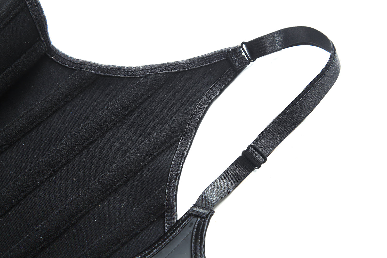 This matte latex corset vest with slim straps is your must-have for today’s active lifestyle. Designed with reinforced steel bones, it shapes your waist, flattens the tummy, and supports your back—all while helping improve posture.