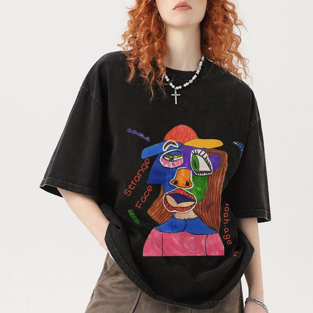 Strange Face Hand Painted Art from a Child's Hands Washed T-shirt
