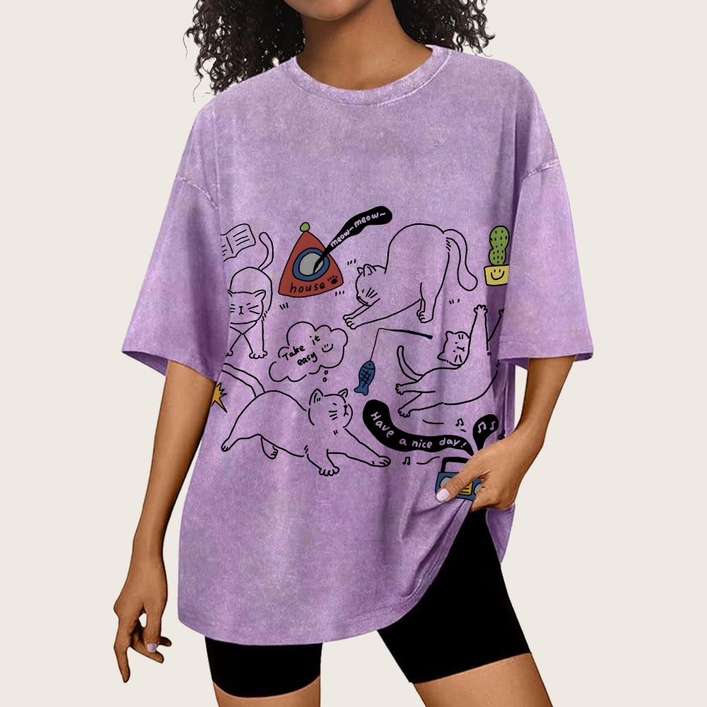 Different Cats Hand Painted Art from a Child's Hands Washed T-shirt