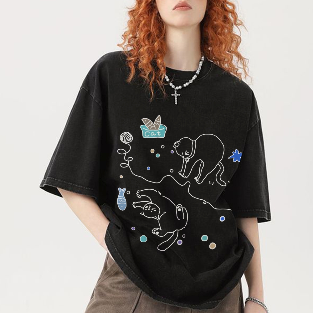 Cute line Cat Hand Painted Art from a Child's Hands Washed T-shirt