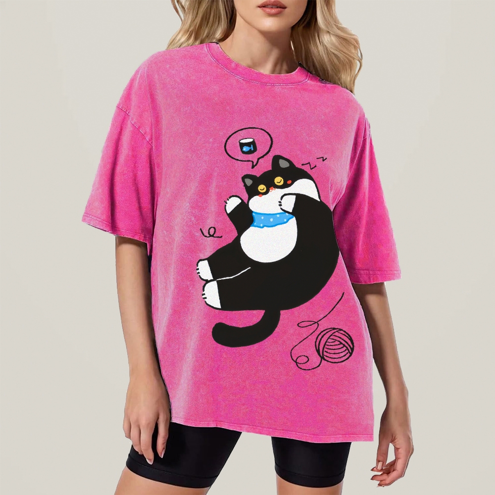Cat Playing With Yarn Hand Painted Art from a Child's Hands Washed T-shirt