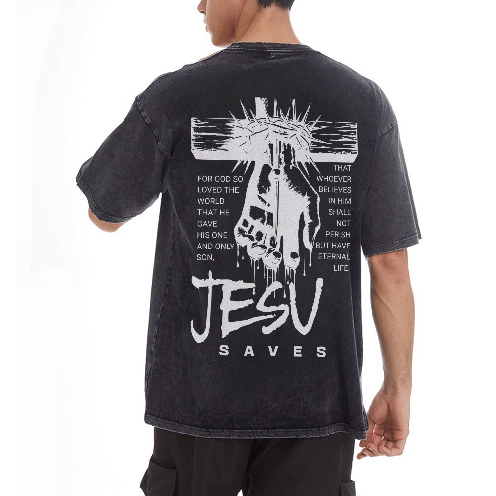 Jesus Saves Men's Casual Washed Cotton T-shirt